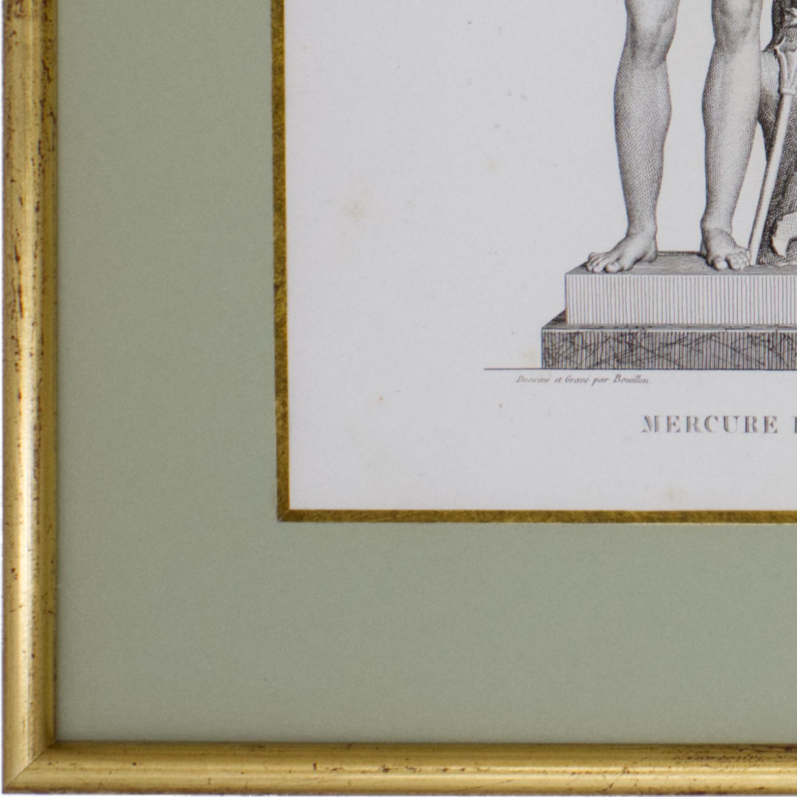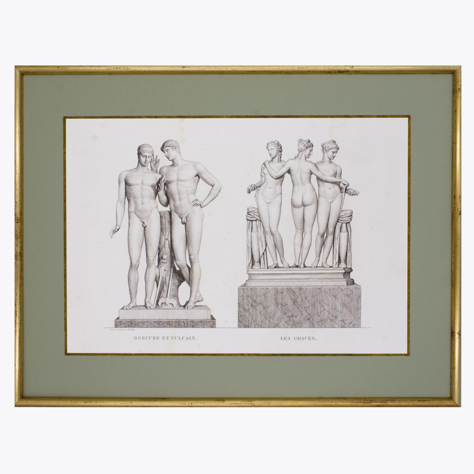 Exquisito grabado de Pierre Bouillon (1776-1831) de su libro Musee des Antiques publicado en Paris en el año 1826. Mercure el Vulcain y Les Graces.