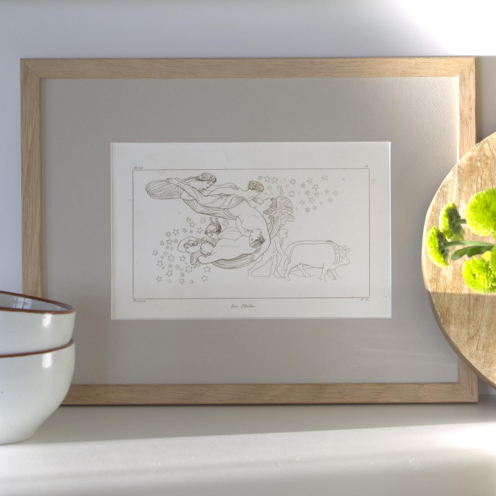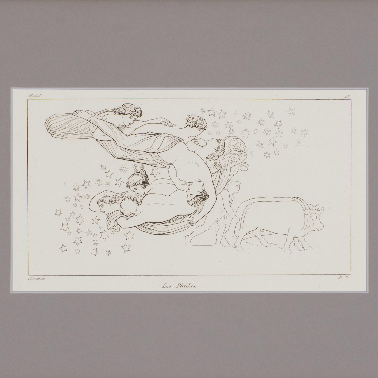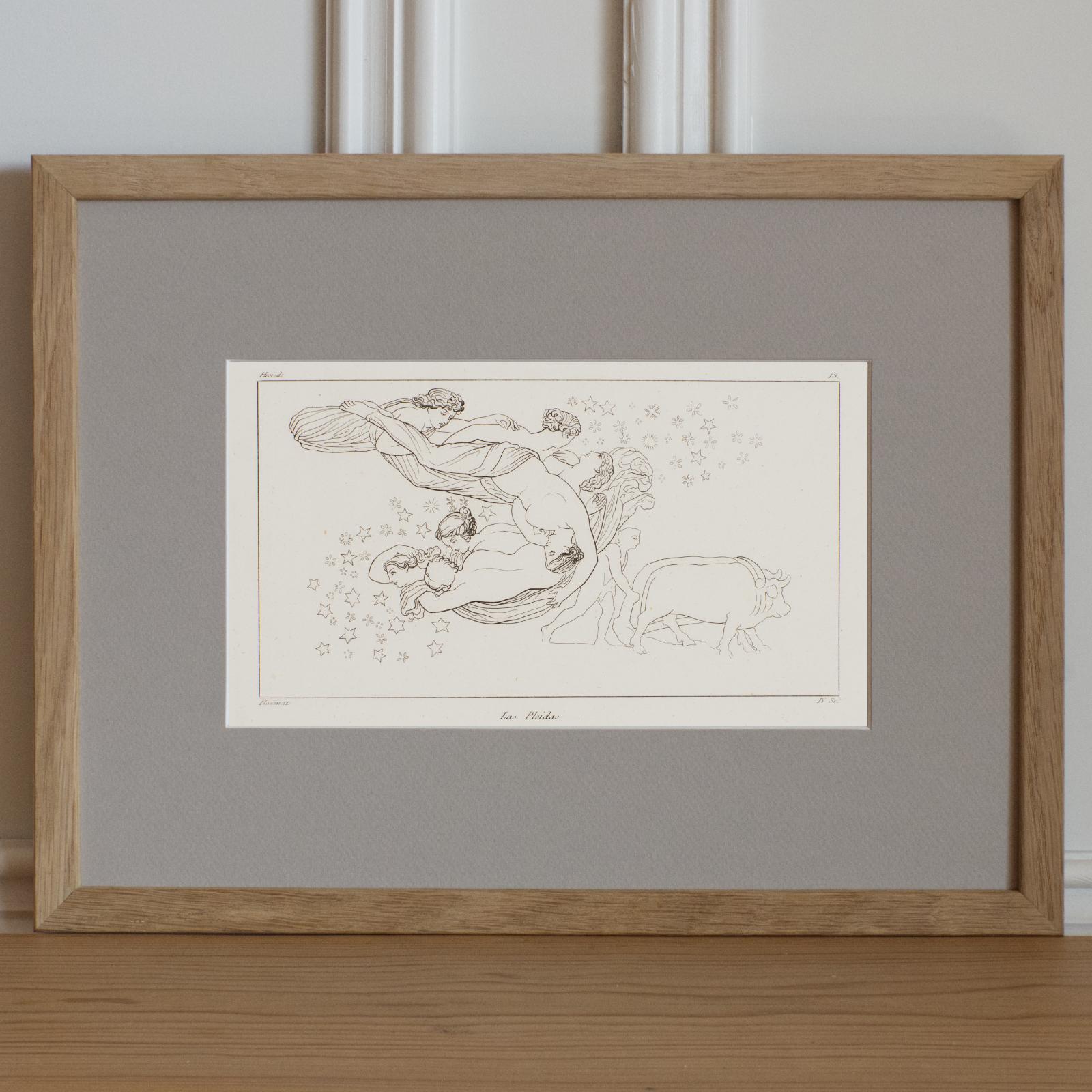 Grabado al contorno, Los días y la Teogonia de Hesidoro. Las Pleidas.