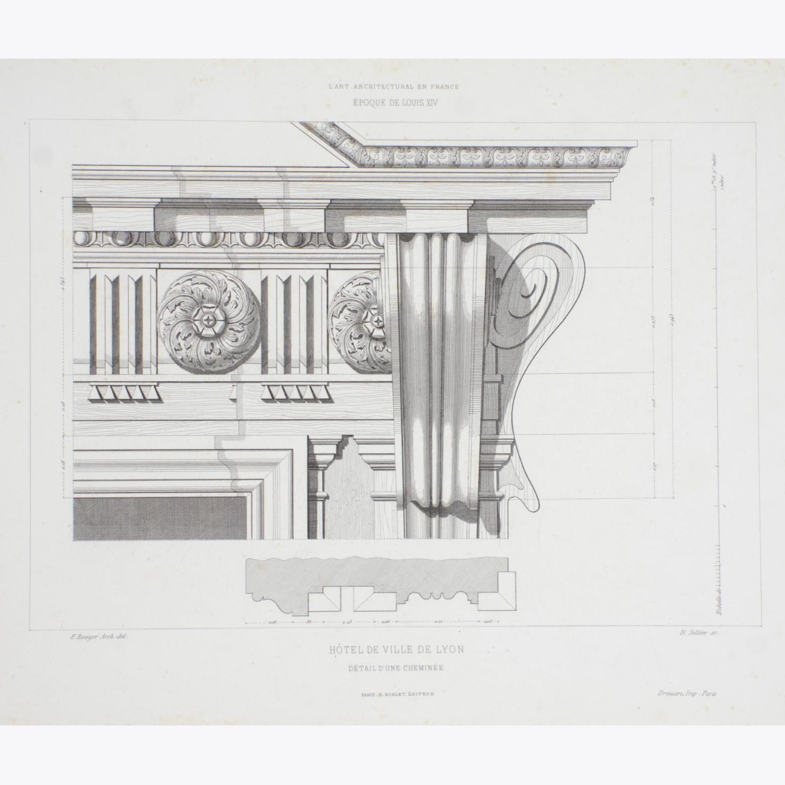 Fantástica colección de grabados antiguos franceses del siglo XIX con motivos de decoración interior y exterior extraídos de modelos ejecutados e inéditos de las principales épocas del Renacimiento por Eugène Rouyer.