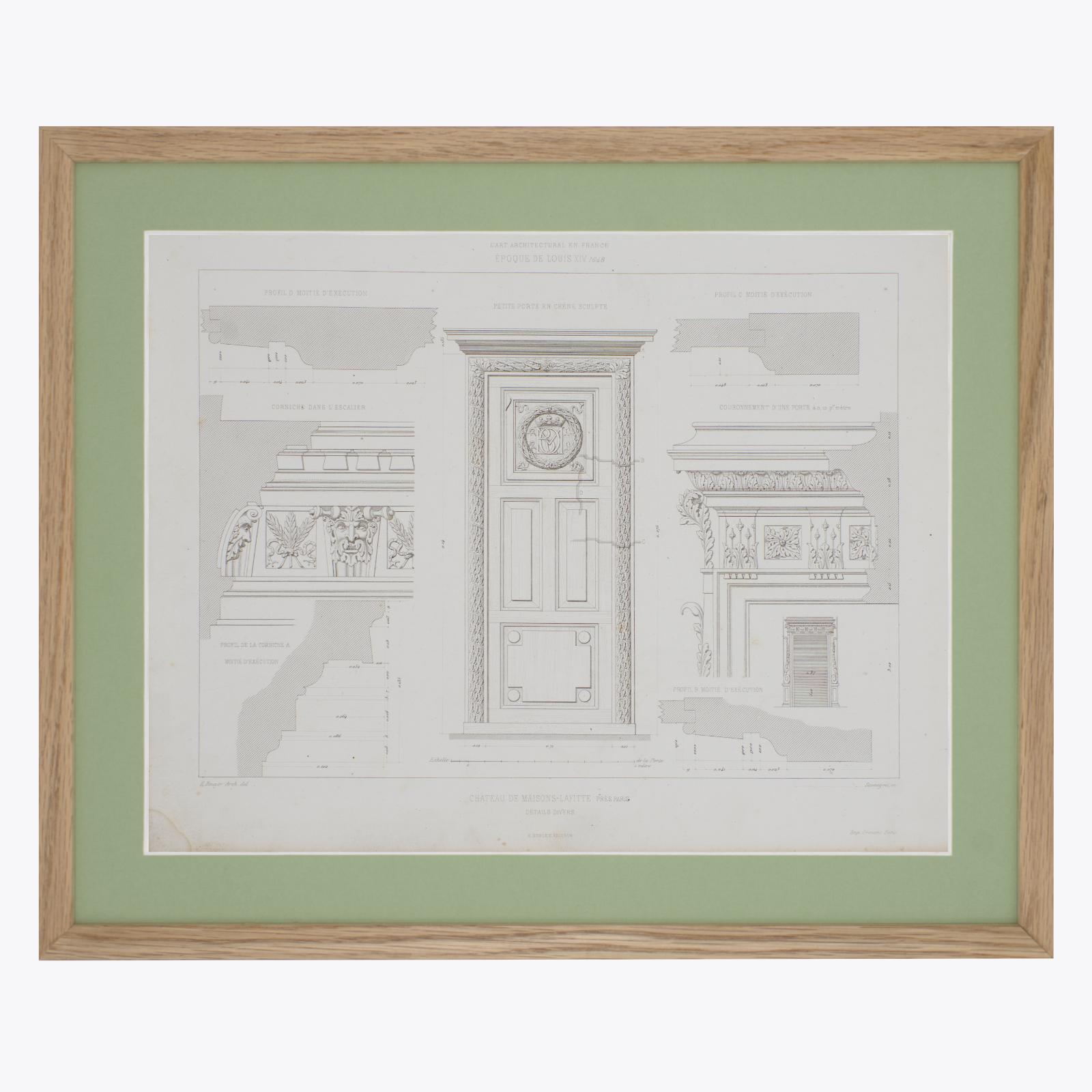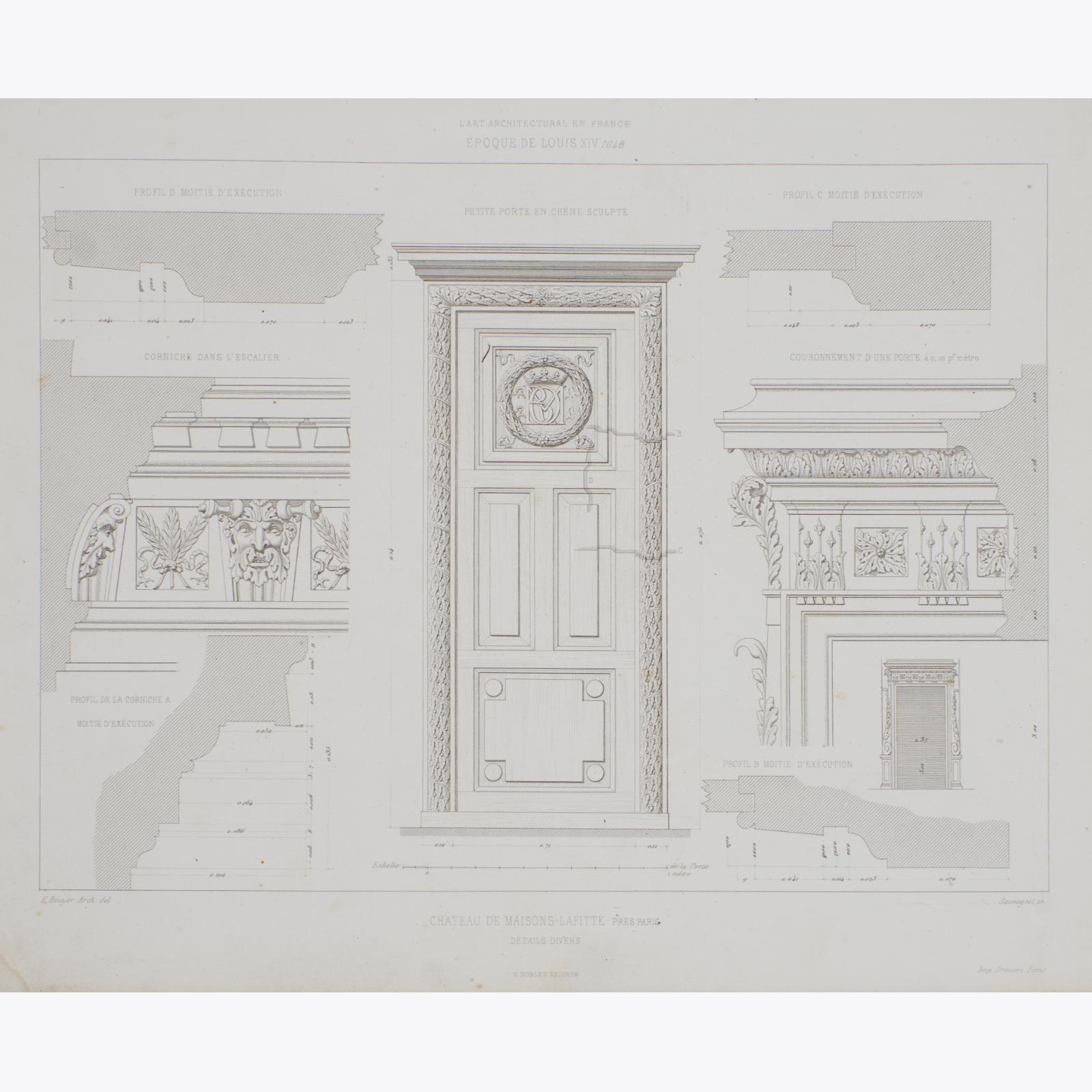 Fantástica colección de grabados antiguos franceses del siglo XIX con motivos de decoración interior y exterior extraídos de modelos ejecutados e inéditos de las principales épocas del Renacimiento por Eugène Rouyer.